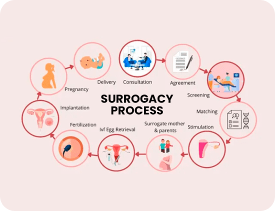 surrogate, Legal Agreements & medical screening followed by Fertilization & Embryo transfer, and